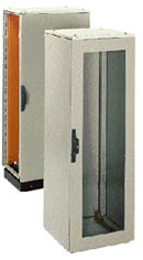 防護等級IP55,柜門具有閉鎖機械和密封墊,加強框有方孔可安裝設備,左右開門120°。 機柜可帶(或不帶)電鍍安裝板,普通門或透明前門(和后門)。 機柜內可安裝通用機架,配電機架和19”電力電子抽屜框架等。有不銹鋼,電磁兼容機柜。