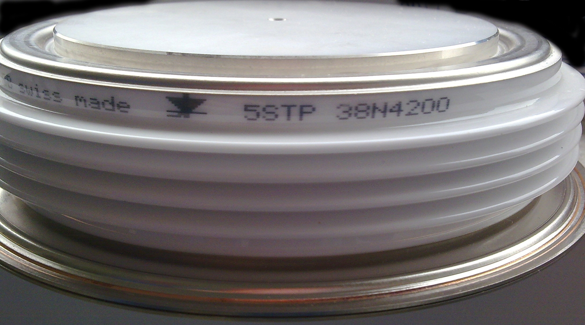 ABB半導體公司生產的大功率晶閘管具有很低的通態壓降,可以選擇合適的Qrr和VT的參數匹配,供串聯或并聯使用,應用于大功率的工業生產和電氣傳動領域。其產品成功地使用在中國的高壓直流輸電線路中。如葛洲壩到上海的直流輸電線、三峽到常州的直流輸電線,都已經使用或將要使用ABB半導體產品。它的最大電壓容量為8500V,最大直徑為5英寸,通態平均電流3000A。