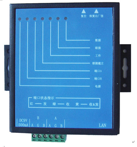 兩端口串口服務(wù)器  2個(gè)獨(dú)立的三線制或五線制RS232端口  2個(gè)獨(dú)立的RS485半雙工端口  RJ45 10Mbps TCP/IP、UDP協(xié)議  具備ESD 15kv保護(hù),無(wú)光電隔離。  具備死機(jī)自動(dòng)重啟功能  運(yùn)行環(huán)境 0-60℃,濕度:5% - 95% RH  TCP/IP Server、Client模式,UDP廣播模式