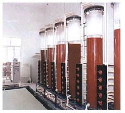 中水回用,一方面為城鎮(zhèn)供水開辟了第二水源,可大幅度降低“上水”(自來水)的消耗量;另一方面在一定程度上解決了“下水”(污水)對水源的污染問題,起到既經(jīng)濟又環(huán)保的作用。  目前中水主要用于以下兩方面:  1、生活雜用水,用于沖廁所、洗地、綠化、景觀等;  2、生產(chǎn)用水; 恒田公司在中水回用設(shè)備/工程方面,根據(jù)客戶對回用水的要求標準而采用不同的處理技術(shù),主要包括:物質(zhì)分離與生化處理、 RO反滲透、MBR生物反應(yīng)膜、離子交換、活性炭吸附等技術(shù); 離子交換法回收 離子交換法回收的目的是將溶解于水中的無機離子排除,原理說明如下:陽離子交換樹脂用氫離子(H+)來交換陽離子;而陰離子交換樹脂則利用氫氧根離子(OH-)來交換陰離子,可以靠電阻(esistivity)或?qū)щ姸?conducivity)來判斷去離子功能是否有效。離子交換樹脂與各陰陽離子的新和力強度如下:Ba2+>Pb2+>Sr2+>Ca2+>Ni2+>Cu2+>Co2+>Zn2+>Mg2+>Ag+>Cs+>K+>NH4+>Na+>H+>SO42->I->NO3->NO2->Cl->HCO3->OH->F-