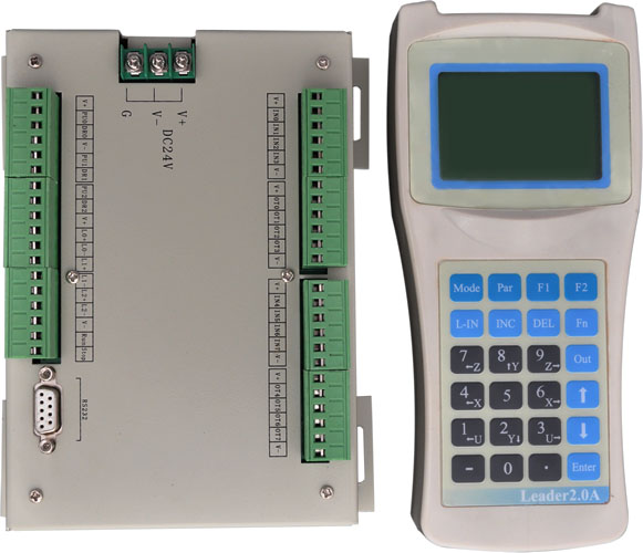 功能特點 1. 本系統(tǒng)為三軸運動控制系統(tǒng),適用于步進電機的各種仿形場合如:切割機、 點膠機、描圖機等控 制應(yīng)用,可以控制兩軸或三軸平臺; 2. 中文點陣液晶顯示(128×64點陣)和27鍵薄膜開關(guān); 3. 可以簡單、方便地實現(xiàn)直線、圓弧、圓以及橢圓、任意曲線的智能記憶并 模仿; 4. 控制器內(nèi)置大容量存儲器,可以實現(xiàn)1000種加工圖形的的存儲,每個圖形 可以多達上千個有效點 5. 單個圖形中每段運動速度可設(shè),控制電機高速、高精度; 最大有效速度: >600KHz / 三軸同時運動; 6. 可以對多達8個輸出點進行有效控制; 7. 加工圖形的編輯簡單、好用。 8. 外接手持合(Leader10A),可脫機,并能進行設(shè)備間圖形拷貝及保存;