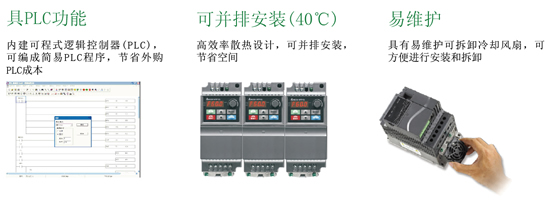 產品描述:本系列采用彈性模塊的設計,最大的特色是內置PLC功能,可編寫簡易程序儲存與執行;并可外加特殊功能擴展卡及通訊卡,是小馬力型的最佳代表,滿足業界最多元化的需求。