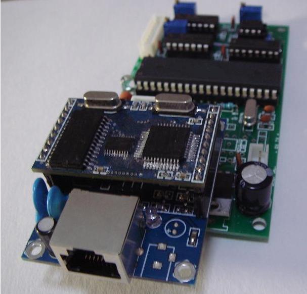 該局域網(wǎng)絡(luò)(以太網(wǎng))控制AD模數(shù)轉(zhuǎn)換/模擬量數(shù)據(jù)采集模塊采用TCP/IP協(xié)議與控制主機(PC機)進(jìn)行通訊,運行穩(wěn)定可靠。傳輸距離遠(yuǎn)(通過交換機級連可以達(dá)300米,甚至可以通過互聯(lián)網(wǎng)超遠(yuǎn)程控制),每塊AD轉(zhuǎn)換/數(shù)據(jù)采集板分配一個唯一的IP地址,通過IP地址進(jìn)行數(shù)據(jù)的傳輸區(qū)分;可以控制的AD轉(zhuǎn)換/數(shù)據(jù)采集板的數(shù)量大(IP地址范圍:192.168.1. 1~192.168.1.254,共可以驅(qū)動最多254個AD轉(zhuǎn)換/數(shù)據(jù)采集板)。本控制板具有6路10位(精度±1LSB)高速A/D轉(zhuǎn)換通道,可同時對外部輸入的6路模擬量(直流0-5V)進(jìn)行模數(shù)轉(zhuǎn)換,轉(zhuǎn)換后的結(jié)果(每通道轉(zhuǎn)換后的結(jié)果為2字節(jié)數(shù)據(jù))通過局域網(wǎng)(以太網(wǎng))向服務(wù)器主機(PC機)快速輸出。可用于現(xiàn)場溫度,濕度,液位等模擬量的采集,與本公司其他網(wǎng)絡(luò)控制板配合可用于工業(yè)現(xiàn)場控制等(可代開發(fā)設(shè)計整套工控系統(tǒng))。本板每秒鐘可對所有6路外部模擬量進(jìn)行大約10次連續(xù)轉(zhuǎn)換輸出(也可定做其他輸出速度或輸出方式)。輸出的數(shù)據(jù)幀固定由14個字節(jié)組成,幀格式具體格式如下: